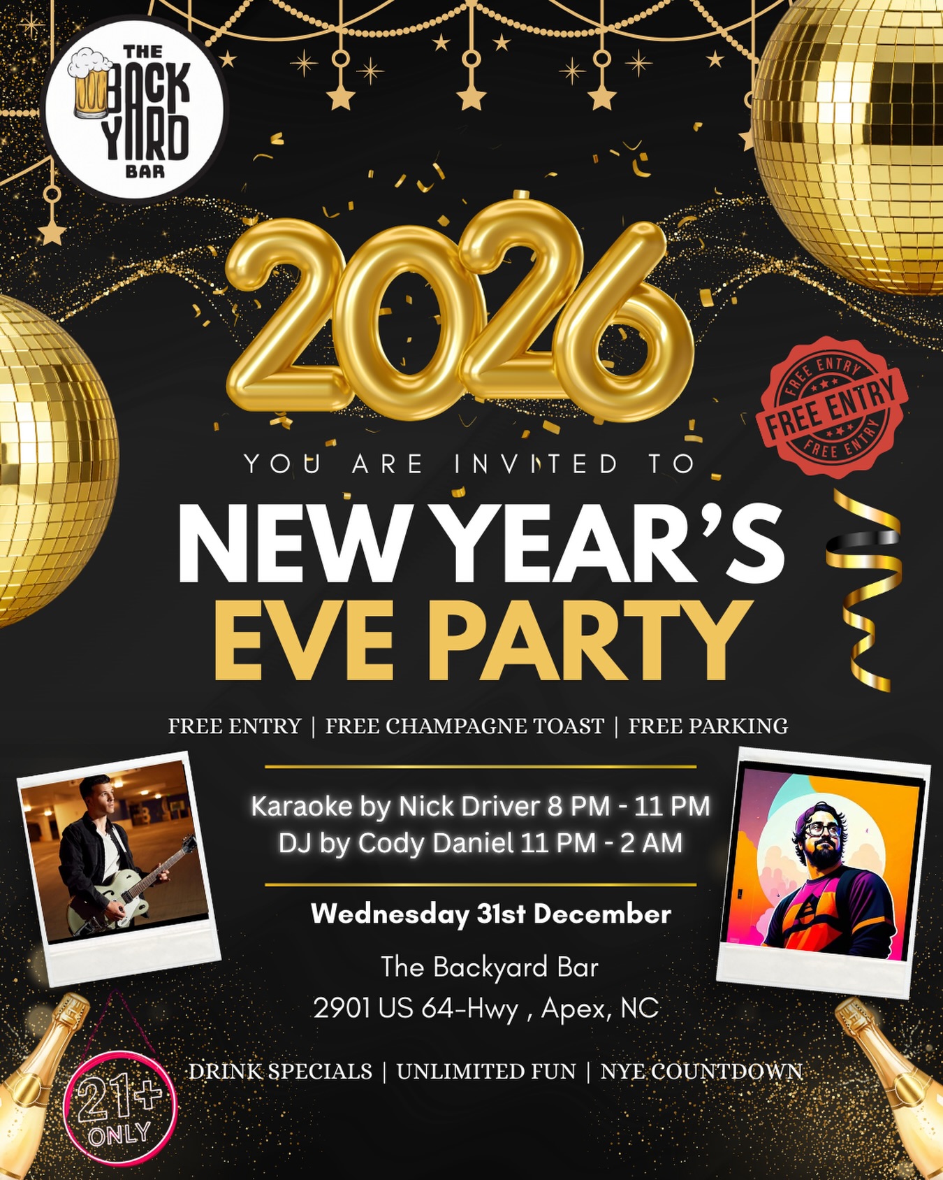 🎉 FREE Entry • FREE Champagne Toast