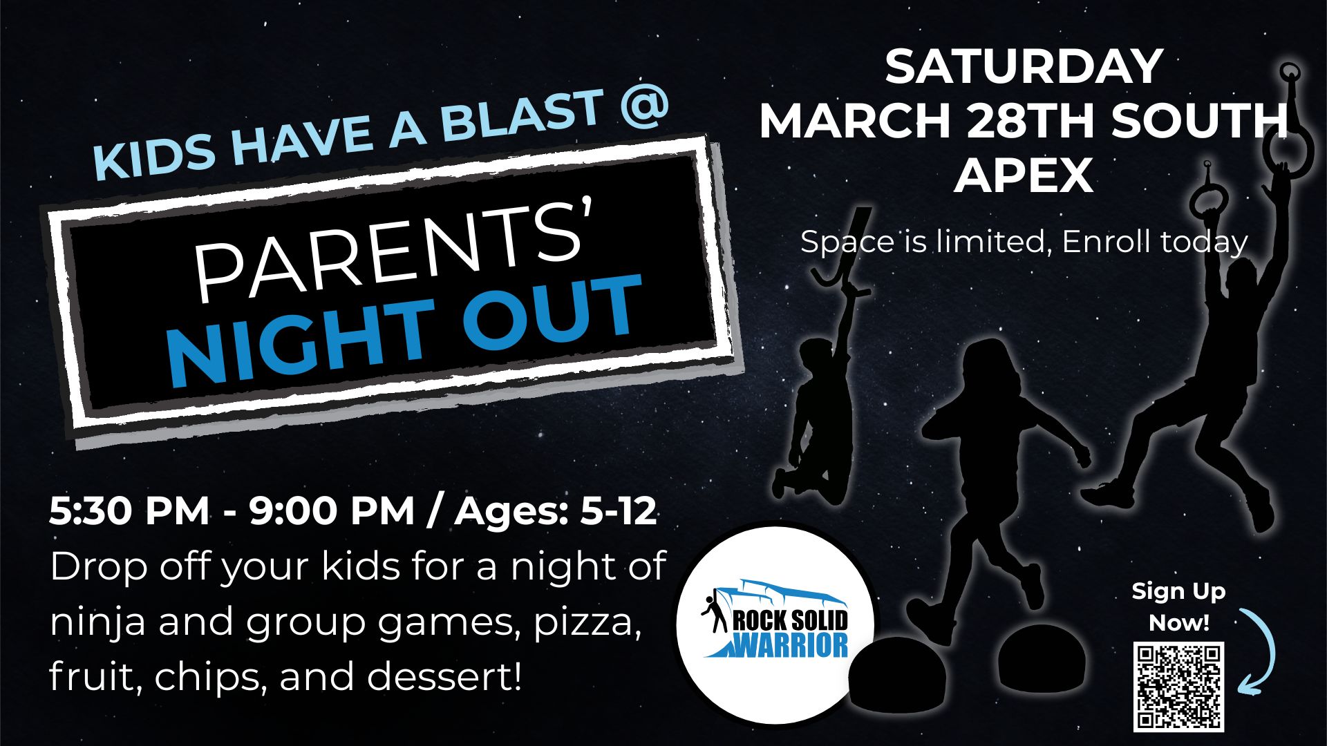 Saturday, March 28th | 5:30-9:00pm | Parents’ Night Out! Drop your kids off for a fun-filled evening of ninja action, …