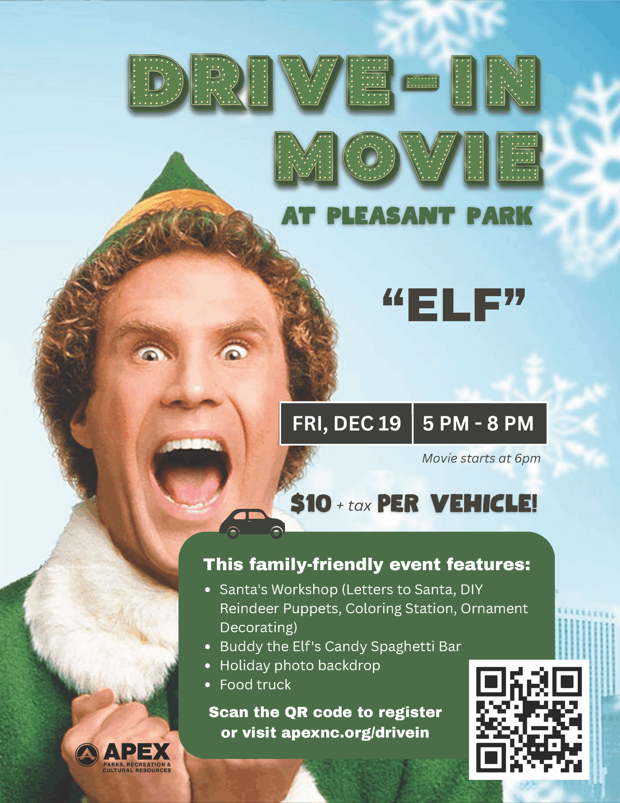 Join us for a festive Drive-In Movie at the Park featuring the holiday classic Elf! The event takes place on …